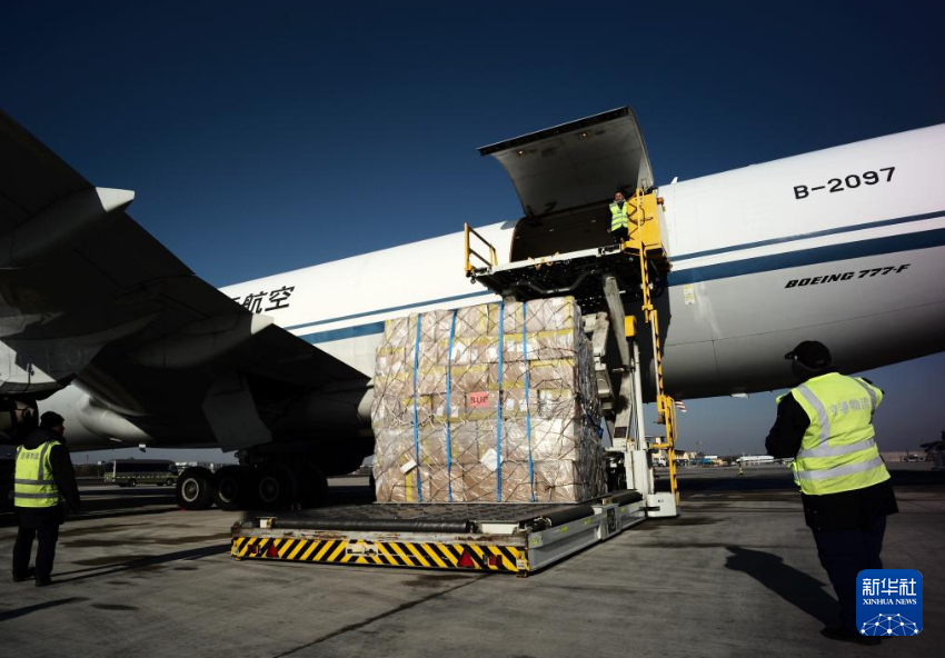 这是在沈阳桃仙国际机场拍摄的货物装机现场(11月13日摄)。新华社记者 李钢 摄