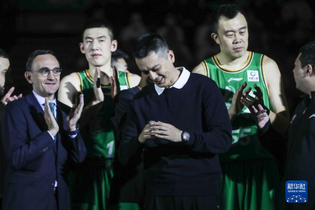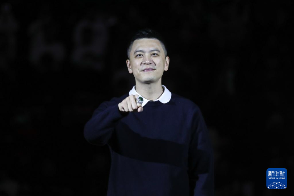 11月15日,前辽宁本钢队主教练杨鸣在赛前领取冠军戒指。新华社记者 潘昱龙 摄pagebreak