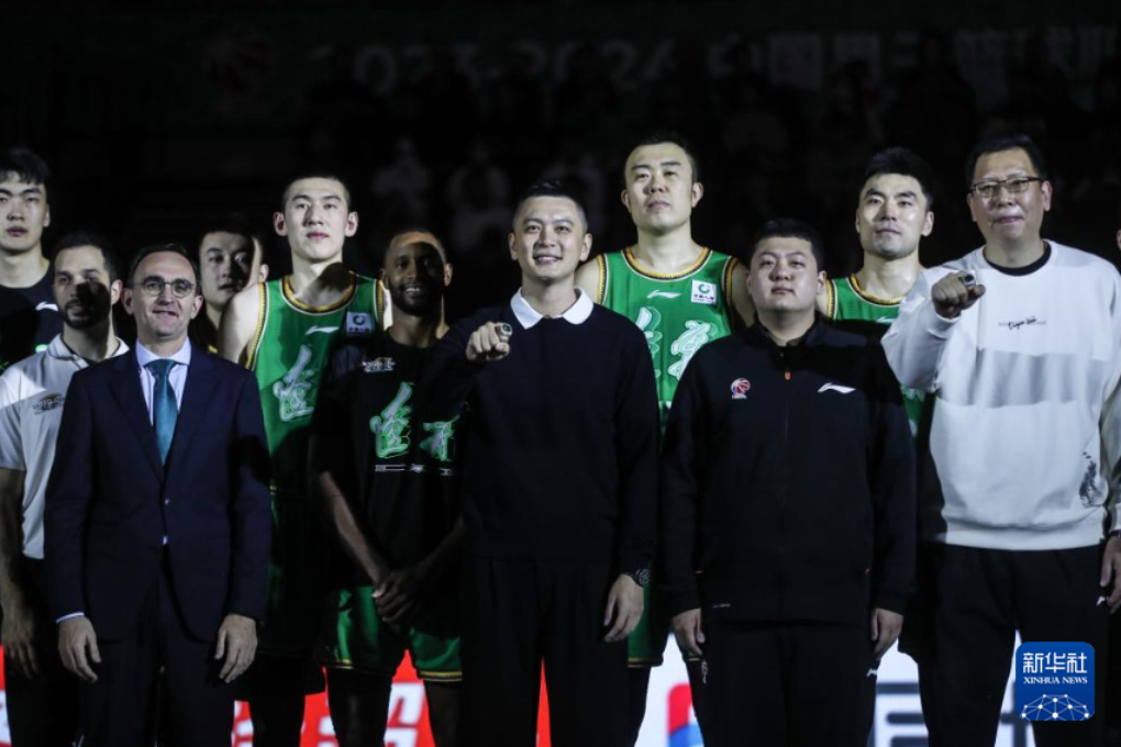 11月15日,前辽宁本钢队主教练杨鸣(中)在赛前领取冠军戒指。新华社记者 潘昱龙 摄pagebreak