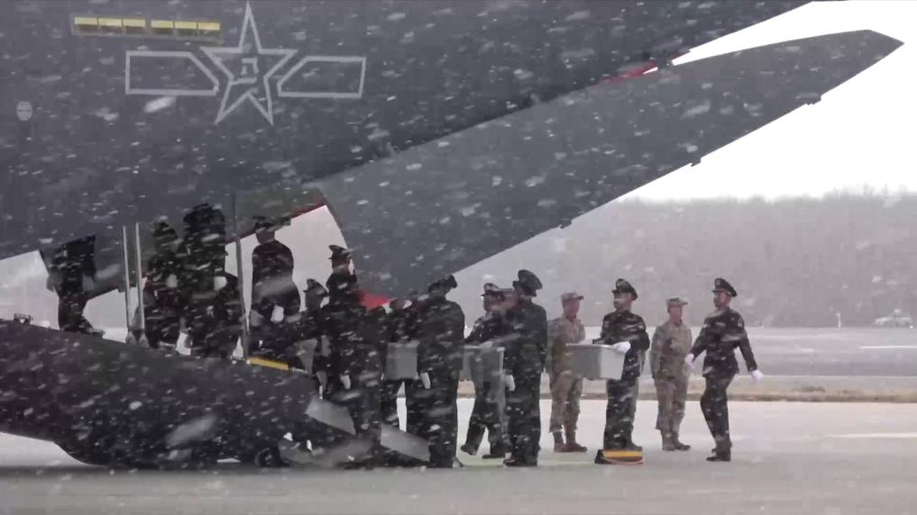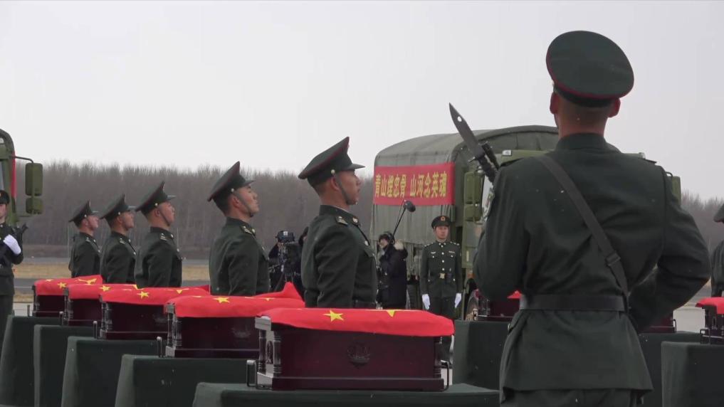 11月23日上午9时,中韩双方在韩国仁川国际机场举行25位在韩志愿军烈士遗骸交接仪式。运送烈士遗骸的专机进入中国领空后,空军两架战斗机迎接护航。12时19分,迎接仪式在沈阳桃仙国际机场正式开始。