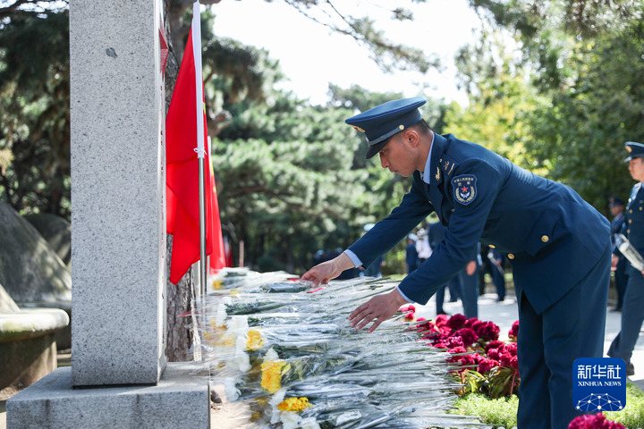 9月30日,在沈阳抗美援朝烈士陵园,解放军战士向烈士献花。(龙雷 摄)
