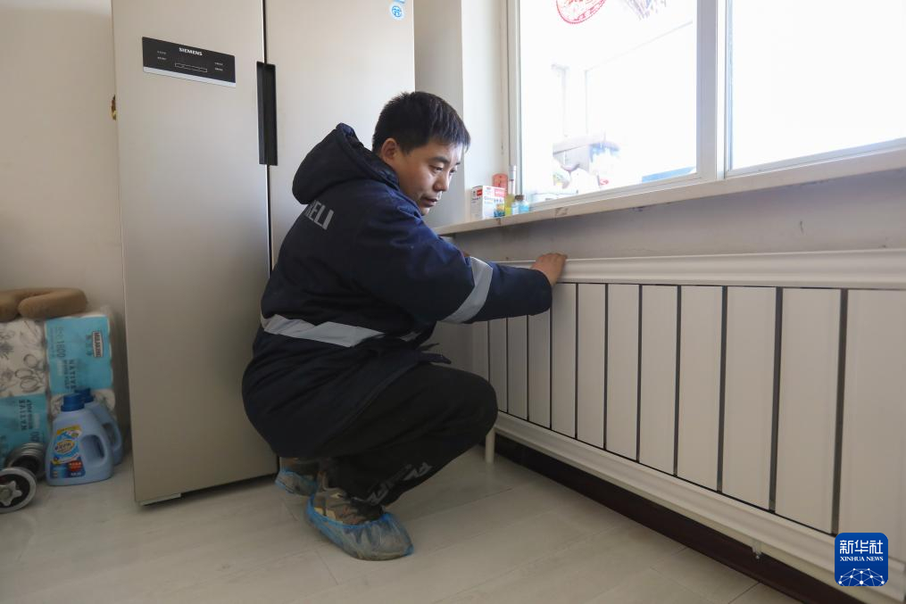 12月18日,沈阳天润热力供暖有限公司工作人员在沈阳市苏家屯区一居民家中了解室内供暖情况。新华社记者 陈为 摄