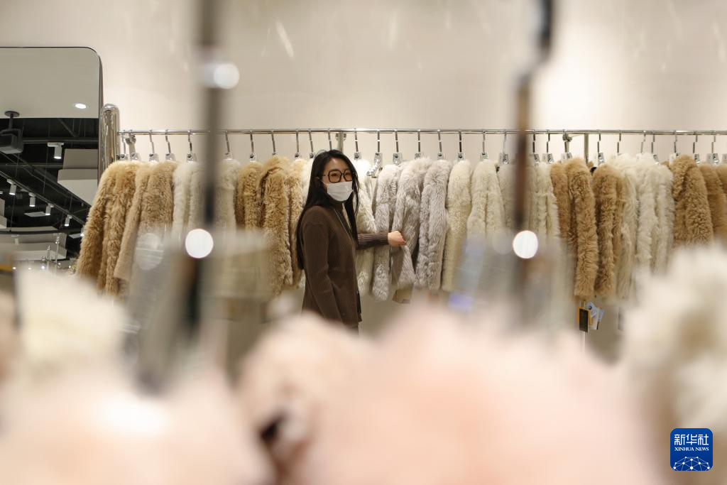 12月20日,在辽宁省辽阳市佟二堡镇的一处商场,顾客在挑选皮草服饰。新华社记者 陈为 摄