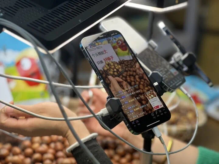 直播间内,主播正在对铁岭榛子进行介绍。(铁岭市委宣传部供图)