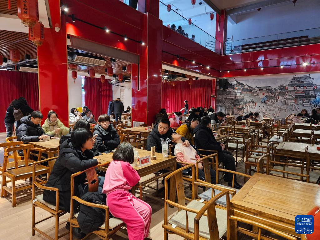 走进位于沈阳老北市景区的嘻哈包袱铺,茶香沁人,笑声不断。游客们一边“泡”着金骏眉、大红袍,一边观看相声表演,尽情享受轻松一刻。老北市景区运营部部长郑重威介绍,大量游客在元旦假期来老北市“打卡”。“老北市景区保有皇寺庙会、北市摔跤、辽菜技艺等非物质文化遗产,传承发展着多元文化,致力打造沉浸式休闲体验集聚区,全面激活街区经济业态。”郑重威说。