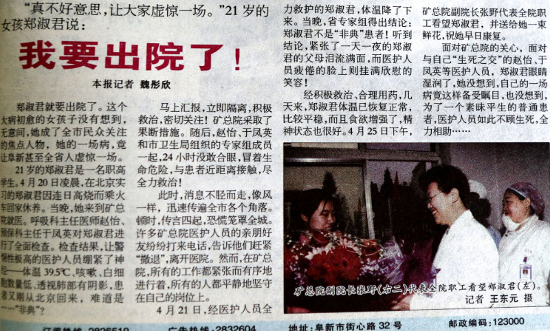 作为部门领导,她依然表现出色,2003年“非典”期间,她担任阜新晚报要闻部主任,她提出“最危险的地方,我先上!”4月20日,有一个学生从北京回来,因为高烧不退被怀疑为感染“非典”,一时间谣言四起,恐慌笼罩全城,魏彤欣一个人冒着风险深入医院跟踪采访,在得知确诊不是“非典”后,第一时间发出了报道《我要出院了》,及时消除了公众恐慌情绪。她带领记者深入发热门诊、城市出入口的检查站和医护人员之间,掌握了大量的一手材料,共采写了70余篇稿件,她本人被评为“辽宁省抗击非典新闻宣传先进个人”,她所在的部门被评为“辽宁省抗击非典新闻宣传先进集体”。