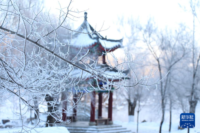 1月12日,游客在古琴湖畔拍摄雾凇。新华社记者 张嘉琪 摄pagebreak