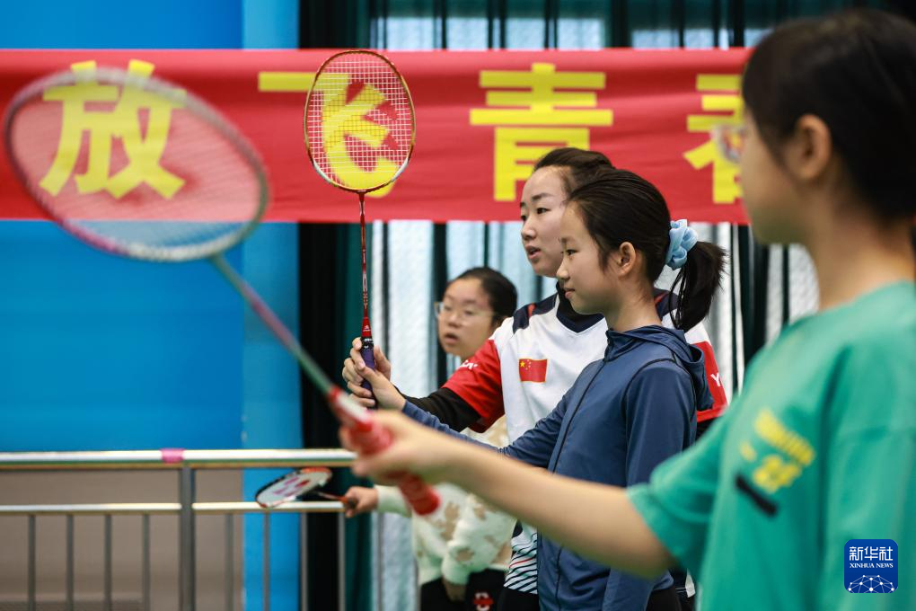 1月15日,学生们在教练指导下练习羽毛球。新华社记者 杨青 摄pagebreak