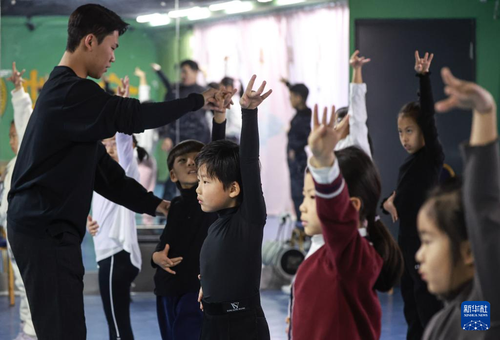 1月15日,学生在教练指导下练习体育舞蹈。新华社记者 杨青 摄