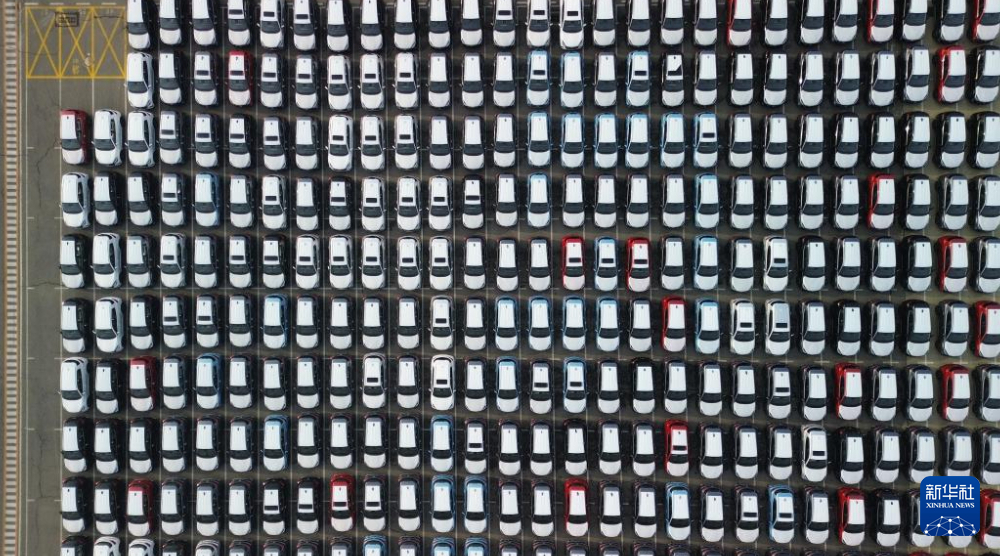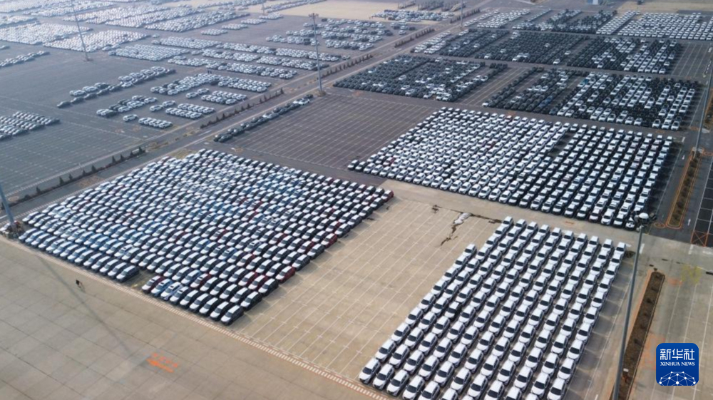1月16日拍摄的停放在大连港大连汽车码头有限公司港口停车场的新车(无人机照片)。新华社记者 陈为 摄pagebreak