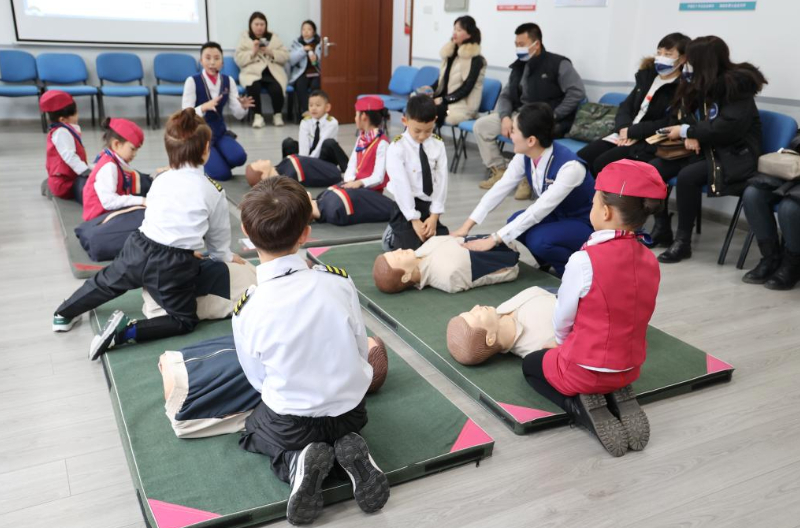 主办方还带领小朋友们变身生命护航官,打卡了辽宁省红十字会唯一对外的应急救护培训基地,体验式学习心肺复苏、AED等日常急症救护常识,掌握正确专业的急救技能;在飞机模拟舱,小朋友们实操飞机舱门,身临其境漫步体验航空场景,解锁特情处置独家体验官身份。本次活动让小朋友们全方位领略了南航北方航空主题文化旅游研学产品的独特魅力。
