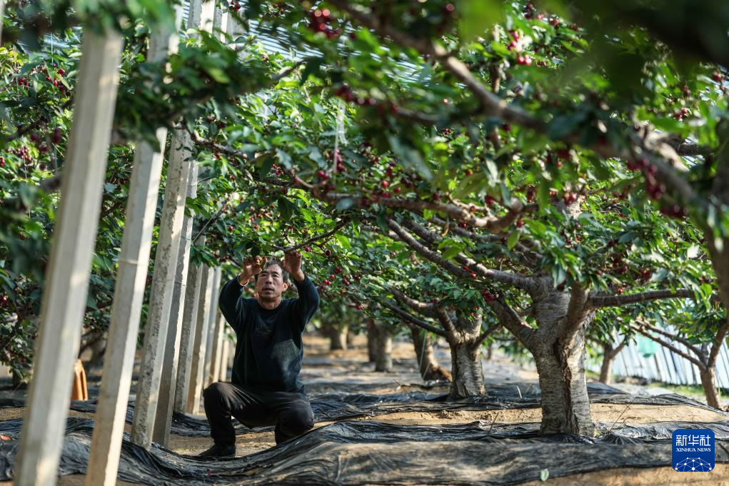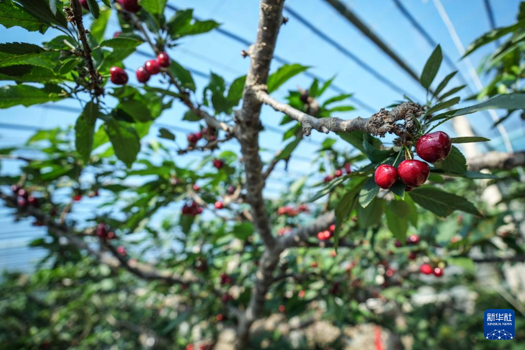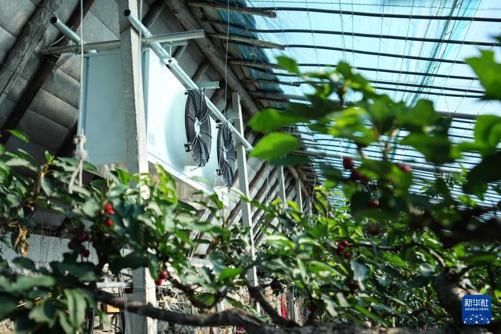 “樱桃能抢早上市,全靠这套新装备。”谭继冬指向大棚顶部的出风口,这是他2023年安装的大棚空调。近年来,当地推广种植“空调樱桃”,既让老百姓在严寒冬日吃上鲜甜多汁的樱桃,又能提高果农收入。