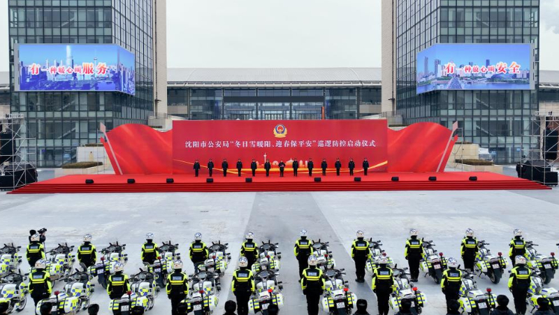 新华网沈阳1月21日电 沈阳市公安局20日在沈阳国际展览中心广场举行“冬日雪暖阳,迎春保平安”巡逻防控启动仪式。