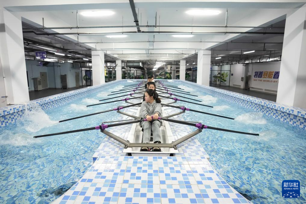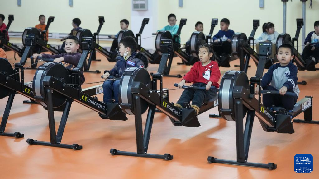 1月24日,参加托管班的学生在进行赛艇训练。新华社记者 潘昱龙 摄pagebreakpagebreak