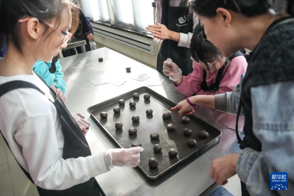 1月25日,参加托管班的学生学习制作糕点。新华社记者 潘昱龙 摄pagebreakpagebreak
