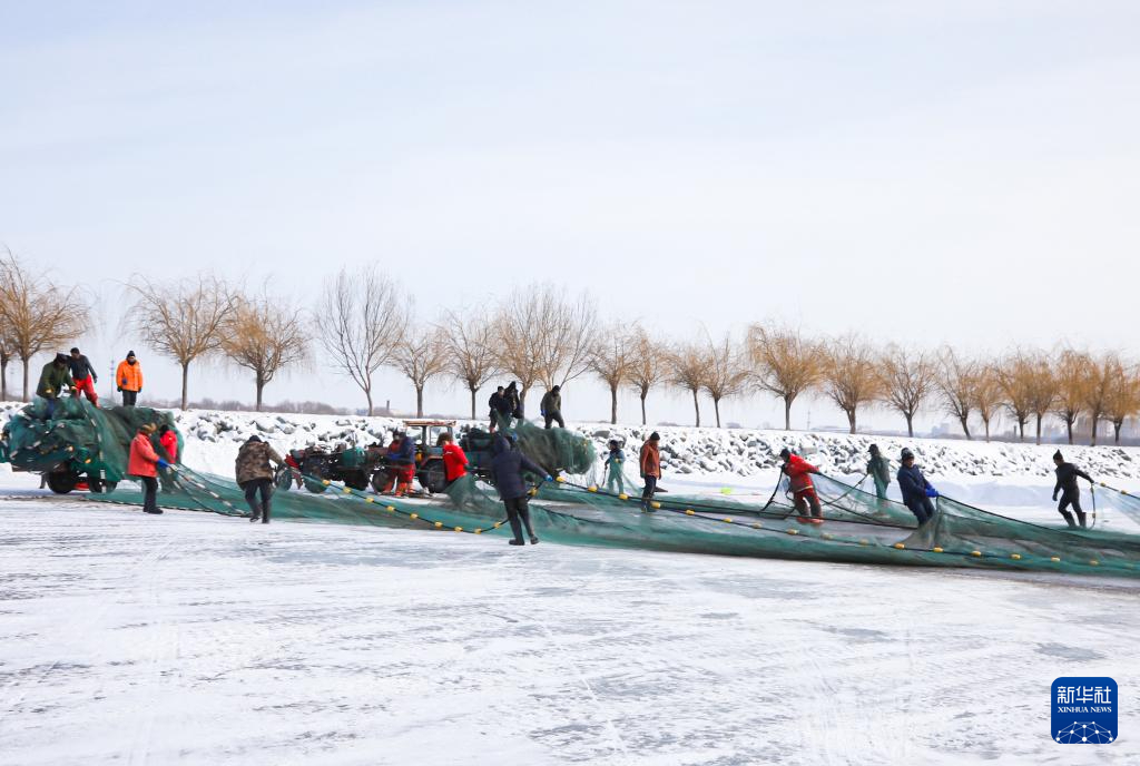 2月1日,工作人员在沈阳市康平县卧龙湖进行冬捕作业。新华社发