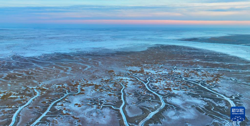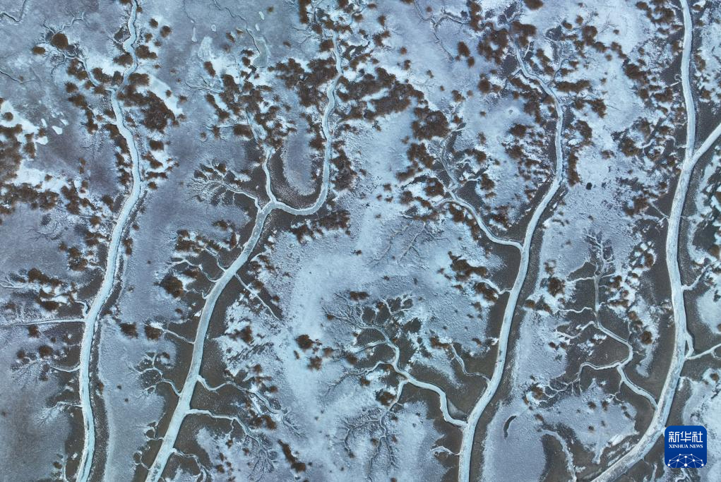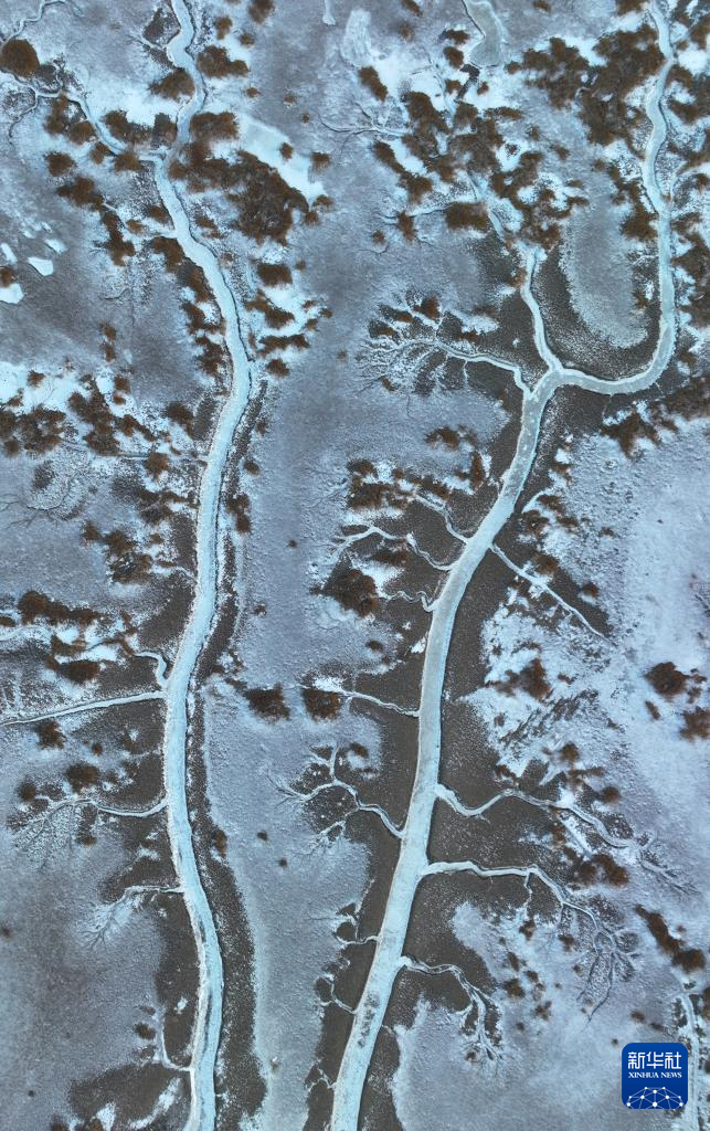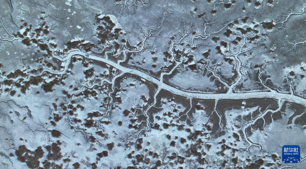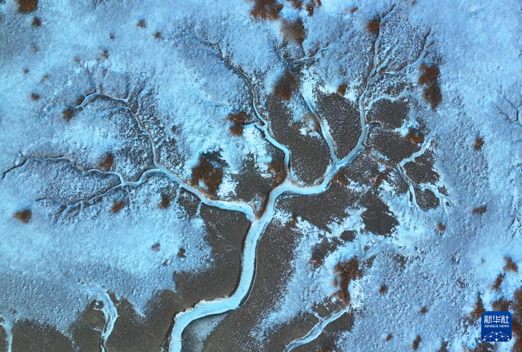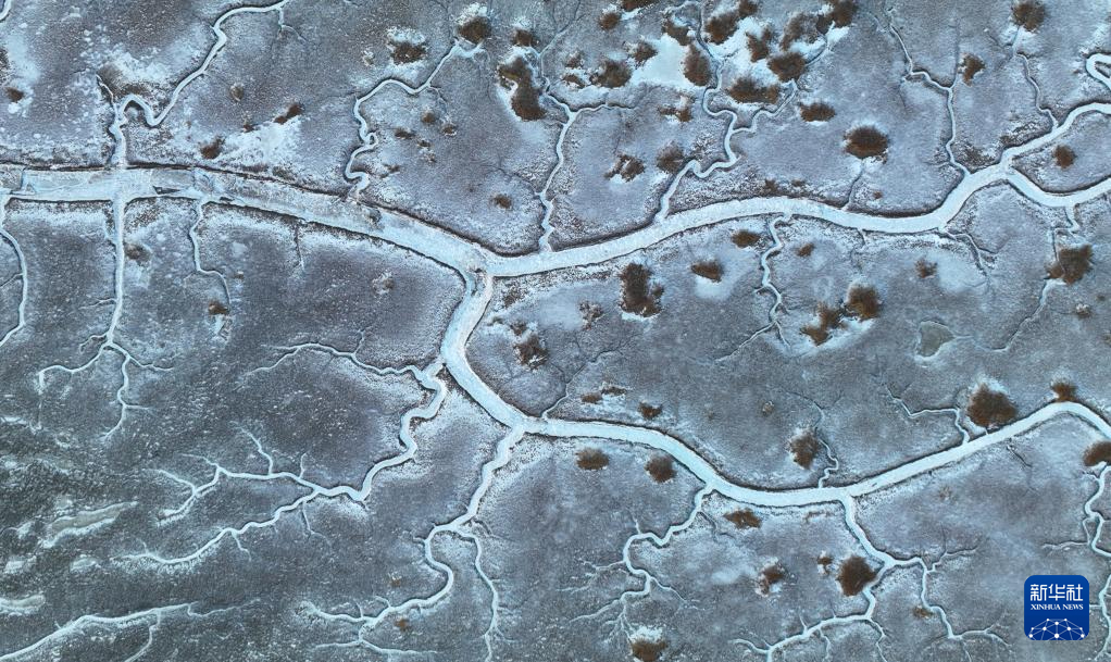 近日,在辽宁盘锦辽河入海口附近,海水在潮汐作用下涌入辽河口湿地的潮沟,并凝结成冰,从高空看去,宛若蜿蜒曲折、形态各异的“冰脉”。pagebreak