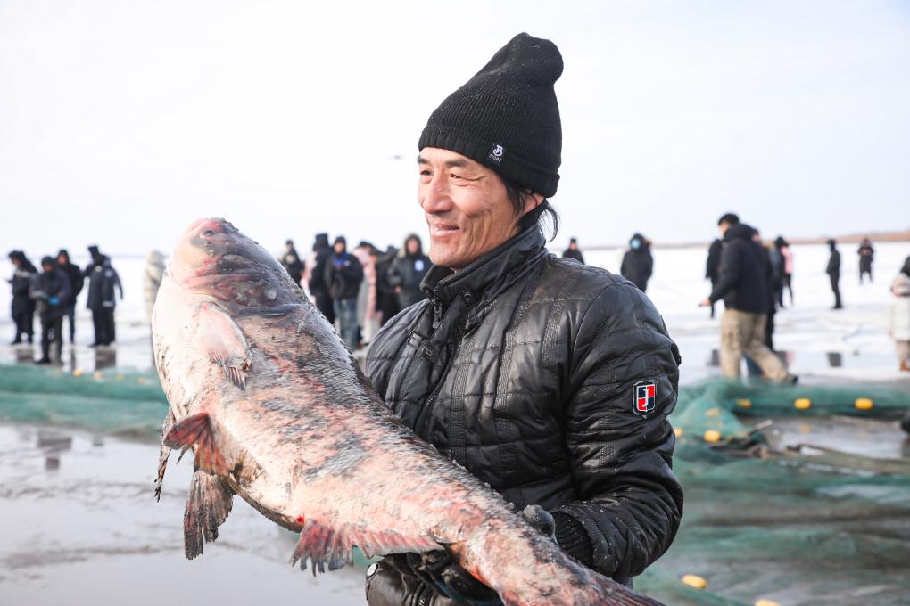 “卧龙湖冬捕”早在辽金时期就被誉为一大奇观。据“鱼把头”介绍,古法捕鱼主要包括进湖、凿冰、下网、拉网、收鱼等几个步骤,网拉到一定程度,鱼就纷纷跃上冰面,这就是所谓的“冰湖腾鱼”。