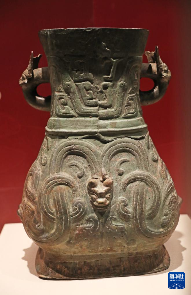 2月2日在辽宁省博物馆拍摄的龙纹方壶。新华社记者 杨青 摄pagebreak