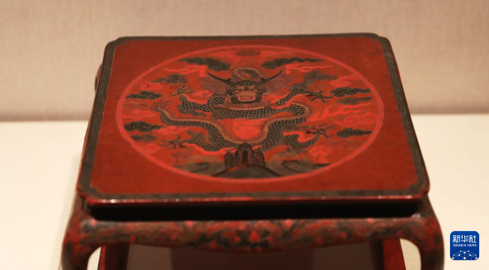 2月2日在辽宁省博物馆拍摄的平涂朱漆雕云龙小方几。新华社记者 杨青 摄pagebreak