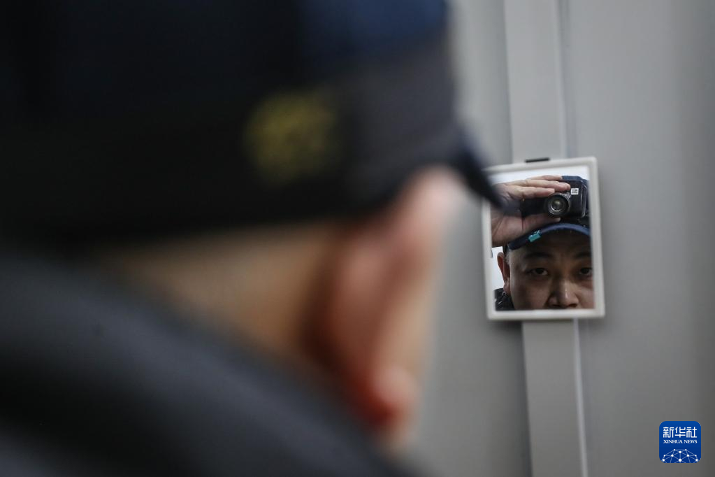2月4日,田鹤整理头灯,准备前往整备库进行检修工作。新华社记者 潘昱龙 摄pagebreak