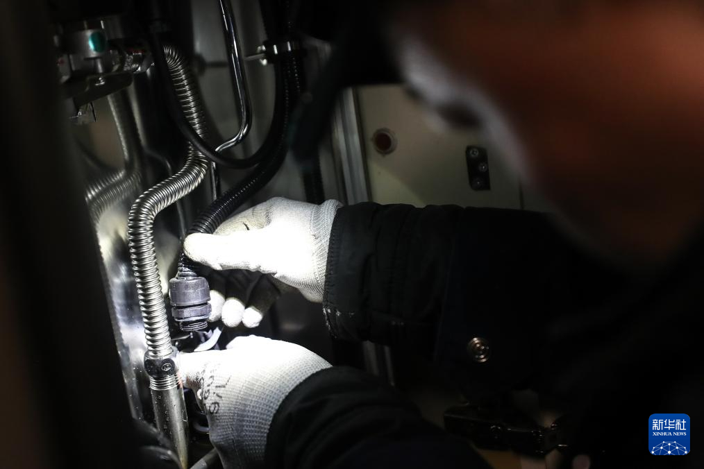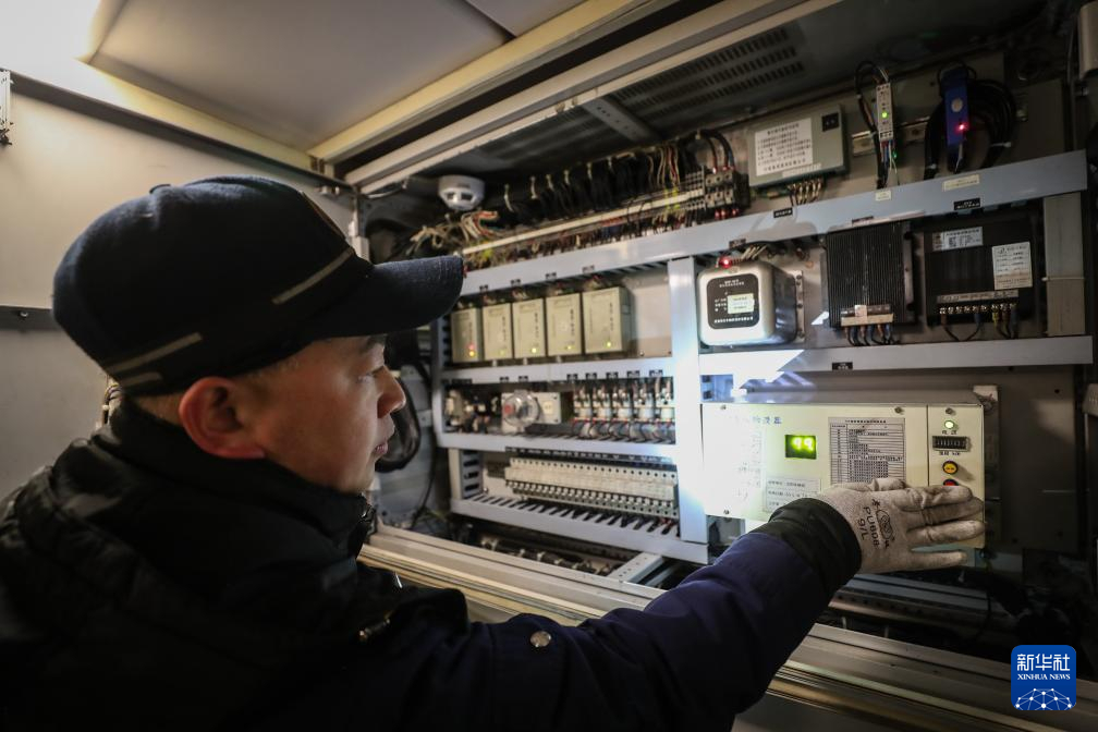 2月4日,田鹤在一列普速列车上进行检修工作。新华社记者 潘昱龙 摄pagebreak