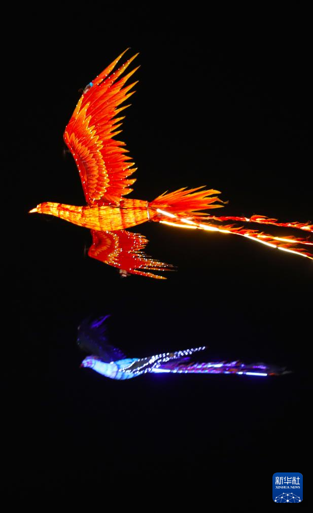 2月10日在老北市景区拍摄的“凤舞九天”演艺场景。新华社记者 杨青 摄