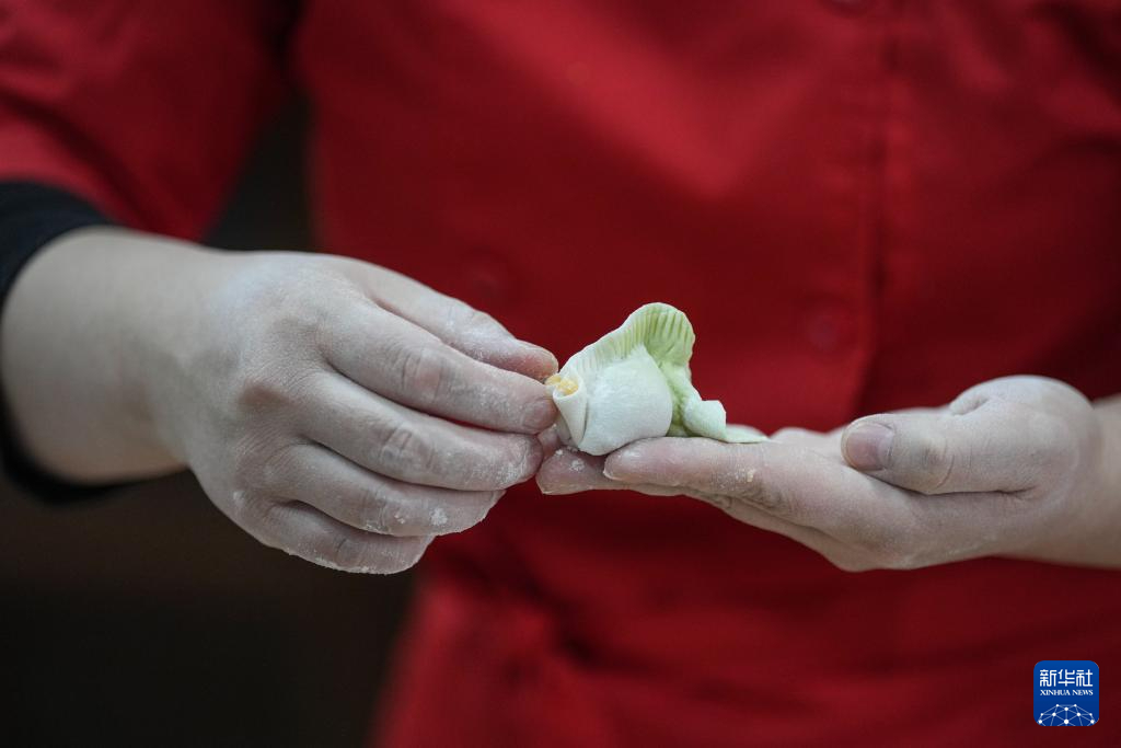 2月14日,郑春香在包制鱼形饺子。新华社记者 潘昱龙 摄pagebreak