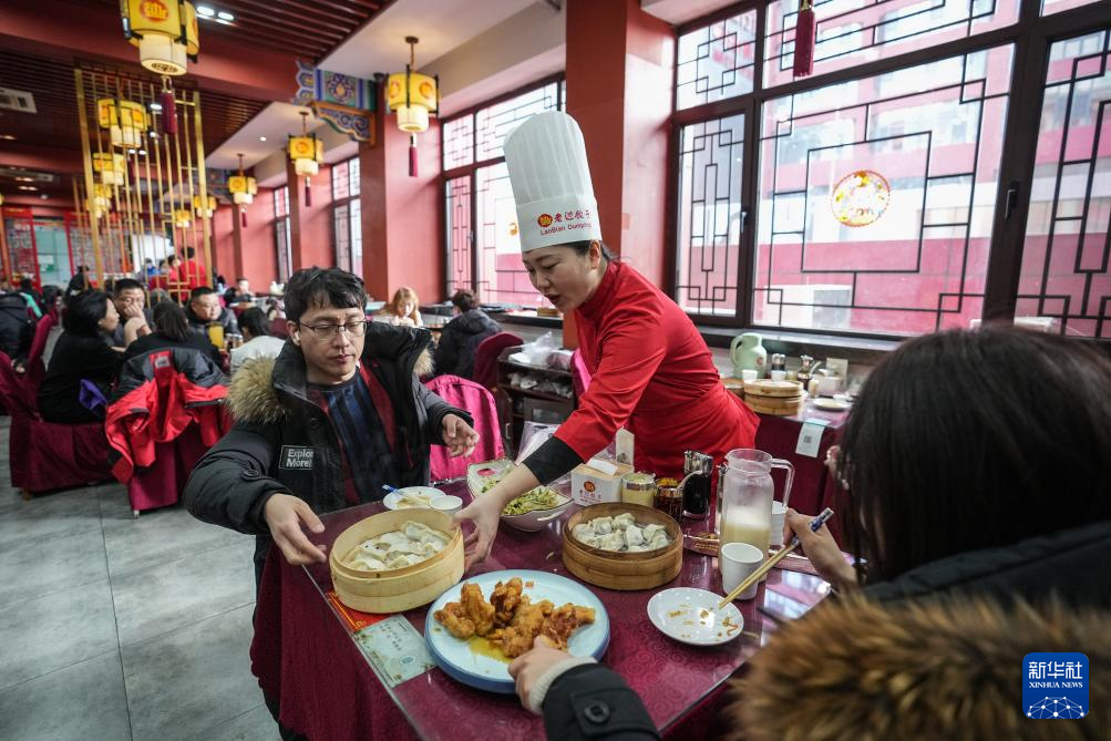 2月14日,郑春香为食客上饺子。新华社记者 潘昱龙 摄pagebreak