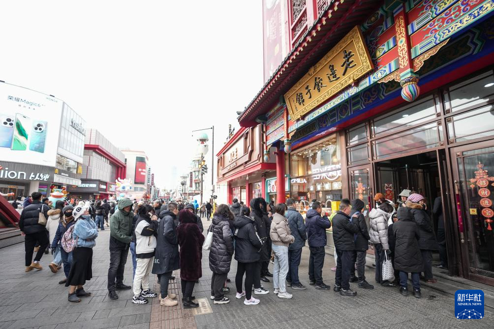 2月14日,食客在沈阳老边饺子馆外排队。新华社记者 潘昱龙 摄