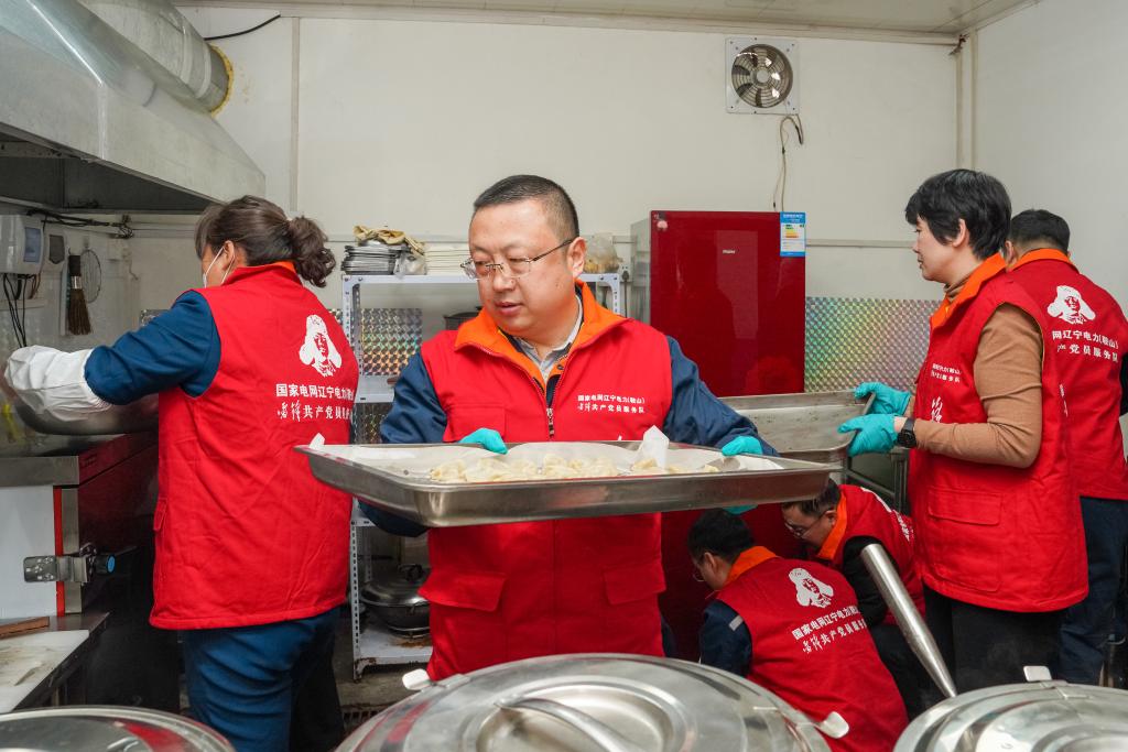 国网鞍山供电公司雷锋共产党员服务队在公益餐厅帮助送餐。新华社发