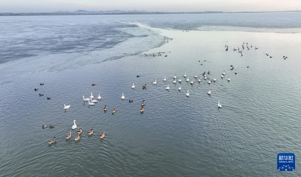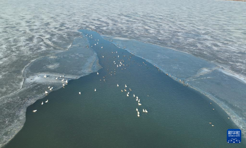 这是3月13日在卧龙湖湿地拍摄的候鸟(无人机照片)。新华社记者 龙雷 摄pagebreak