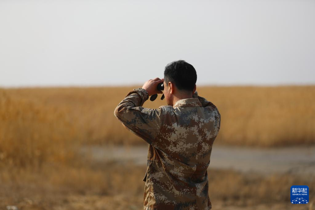 3月18日,在辽河口保护区,赵仕伟用望远镜观察候鸟迁徙情况。新华社记者 杨青 摄pagebreak