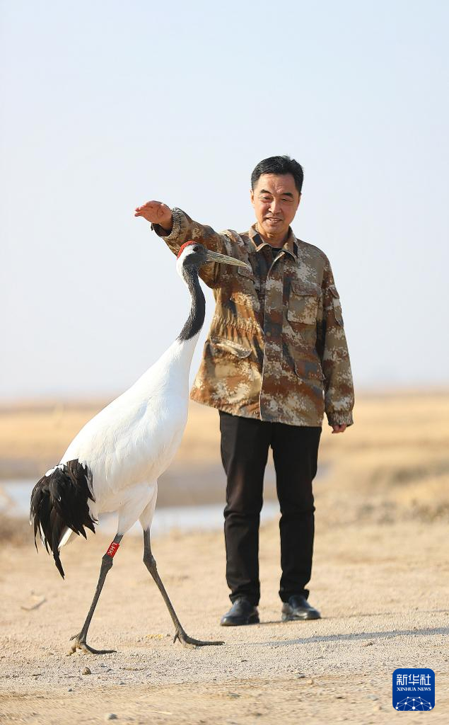 丹顶鹤是国家一级保护动物,赵仕伟和同事们早年监测发现,途经辽河口迁徙的丹顶鹤种群呈现不断下降趋势。对丹顶鹤进行人工繁育,成为赵仕伟工作中的重要部分。1996年,赵仕伟和同事成功孵化了3只小丹顶鹤,并逐渐摸索出一整套丹顶鹤繁育方法。从2016年到2023年,赵仕伟和同事已经繁育了356只丹顶鹤,野化放飞140只,有力补充了丹顶鹤野生种群数量。
