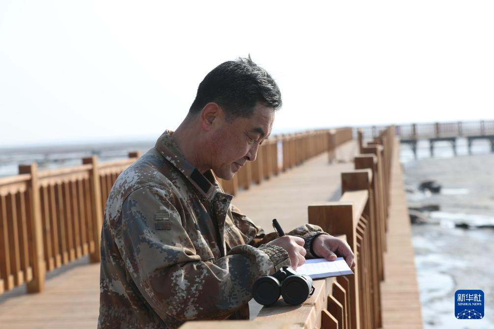 3月18日,在辽河口保护区,赵仕伟记录候鸟迁徙情况。新华社记者 杨青 摄pagebreak