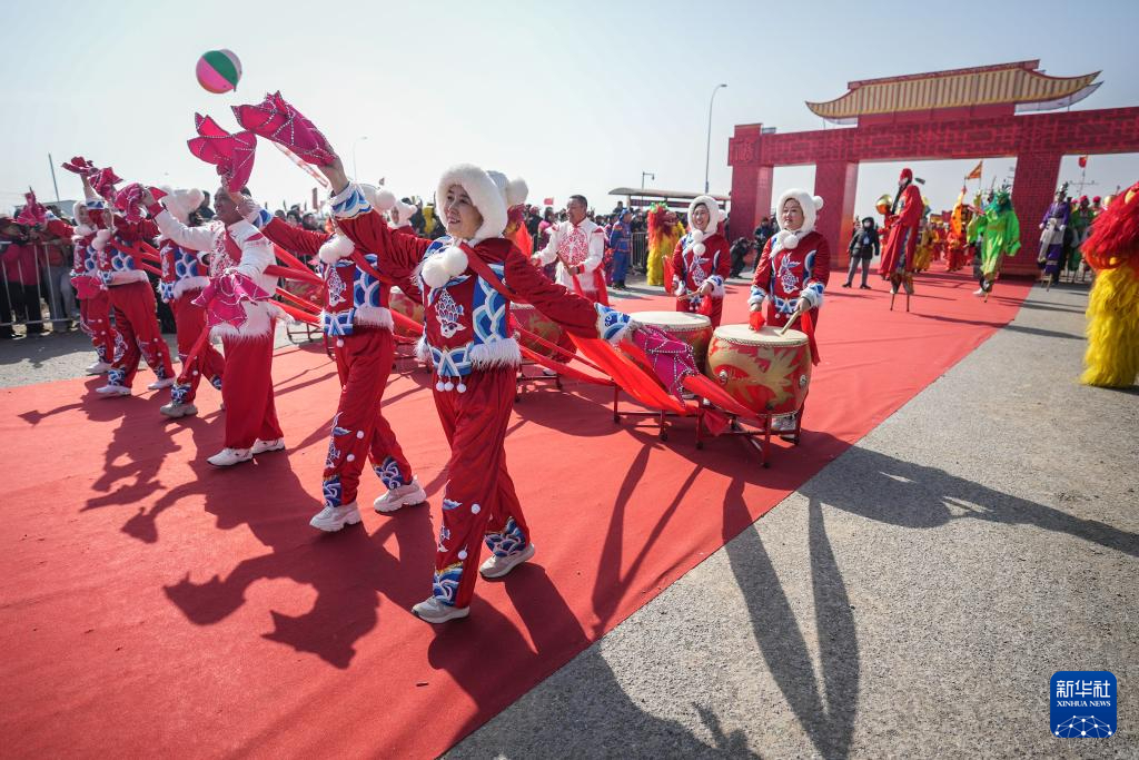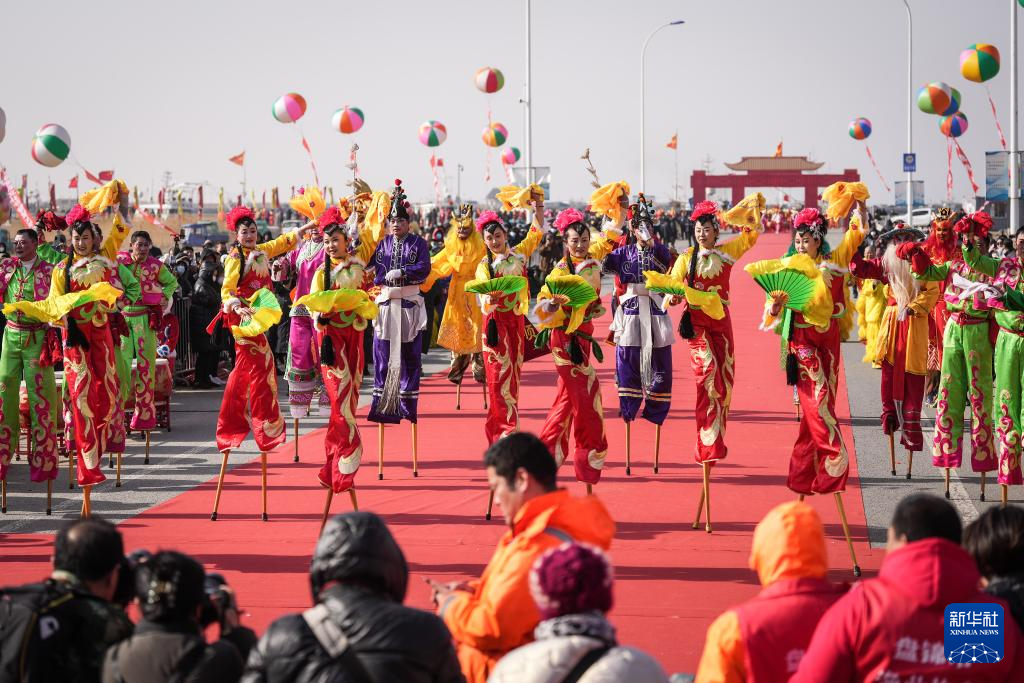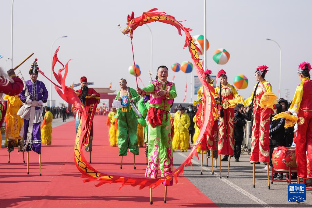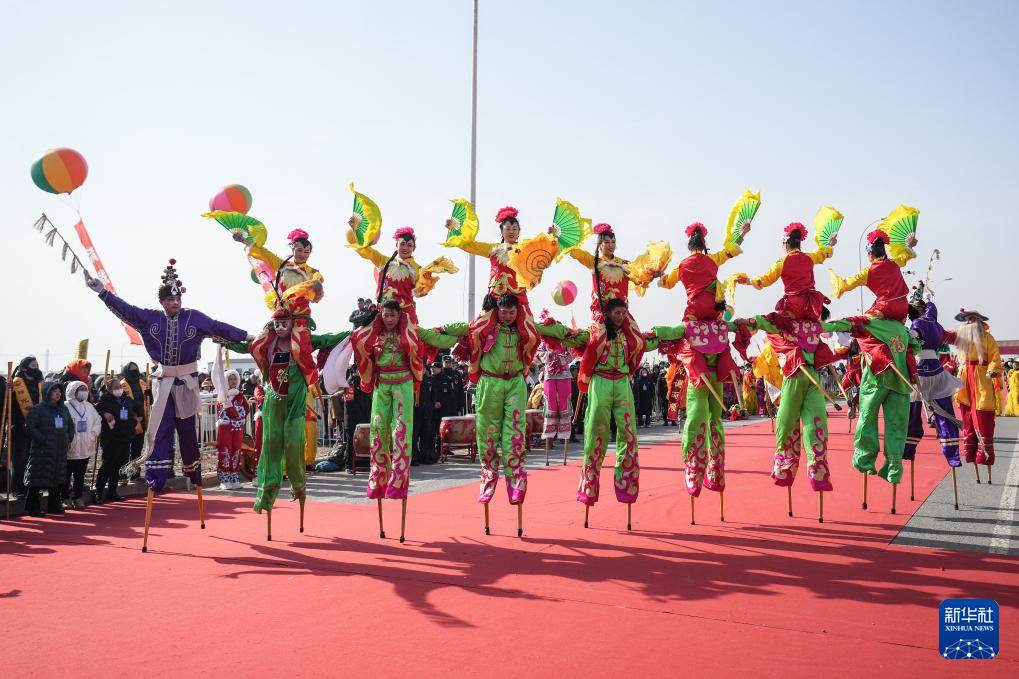 3月18日,演员进行高跷秧歌表演。新华社记者 潘昱龙 摄pagebreak