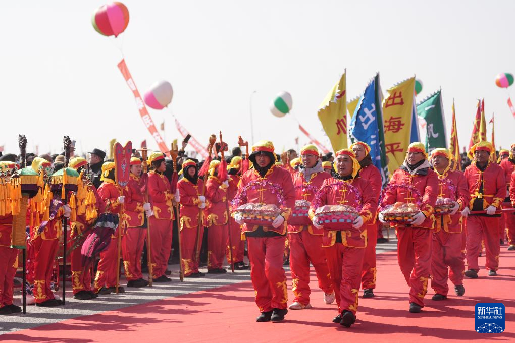 当日,辽宁省盘锦市举办盘锦首届渔雁文化节暨第六届二界沟开海节。活动中渔家祭祀、非遗秧歌、舞狮等演出再现当地渔雁文化,渔民也通过这样的形式表达盼望新一年渔业丰收的美好愿望。pagebreak