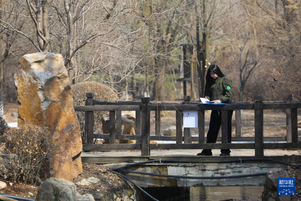 3月23日,孟蝶对观察的鸟类进行记录。新华社记者 杨青 摄pagebreak