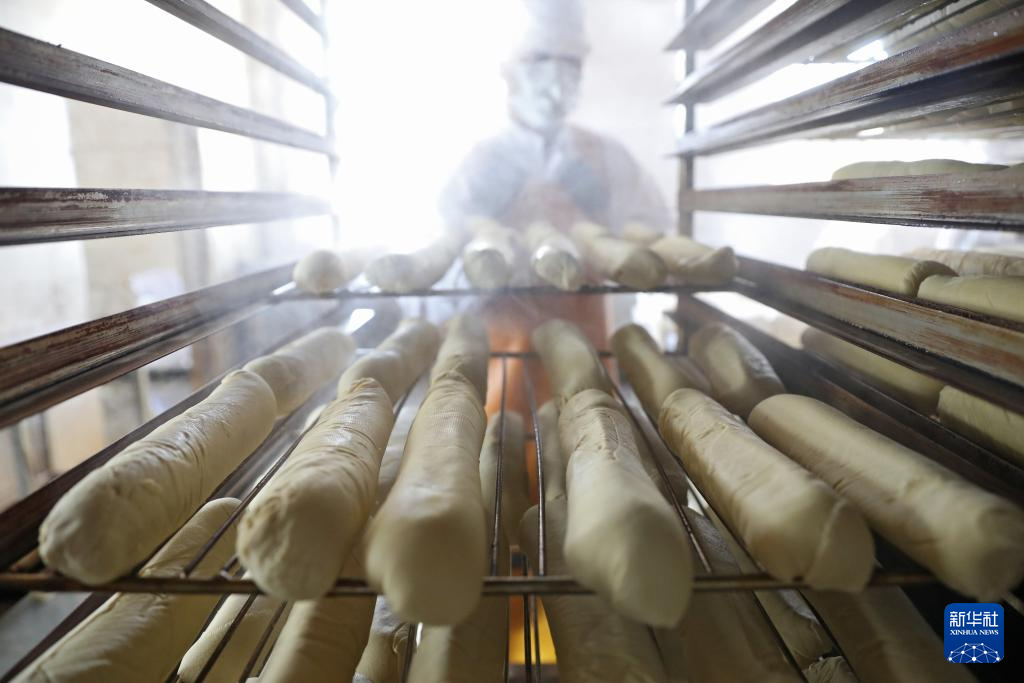 3月21日,工人在亮中桥镇的昌图福源食品有限公司车间内将做好的干豆腐制品放入熏烤架上。新华社记者 姚剑锋 摄
