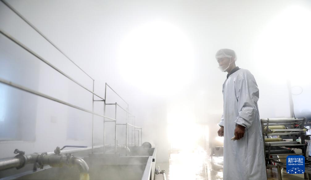 3月21日,工人在亮中桥镇的昌图红瑞食品酿造有限公司车间内控制泼浆机器的开关。新华社记者 姚剑锋 摄