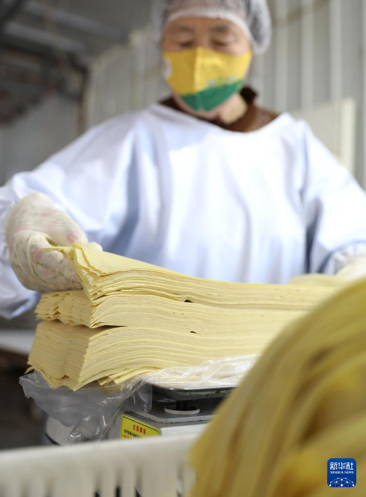 3月21日,工人在亮中桥镇的昌图红瑞食品酿造有限公司车间内对制作好的干豆腐进行称重。新华社记者 姚剑锋 摄