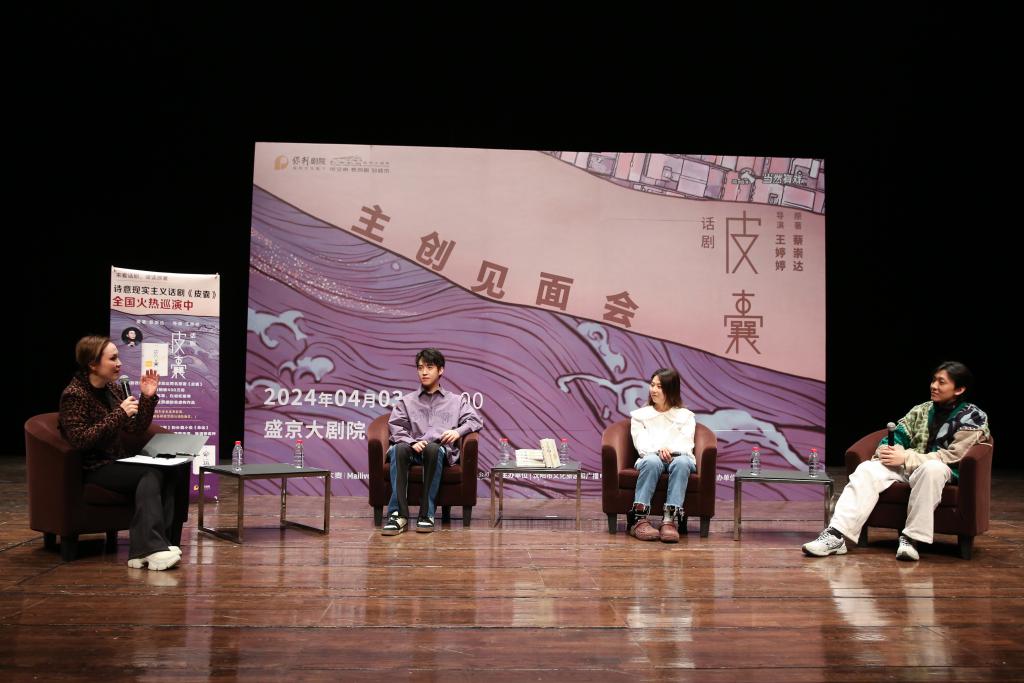 诗意现实主义话剧《皮囊》沈阳主创见面会3日在盛京大剧院举行。主人公黑狗达的扮演者青年演员马闻远、执行导演周鑫以及泥巴阿小的扮演者谭皓罡出席见面会,与大家分享这部作品台前幕后的精彩故事。