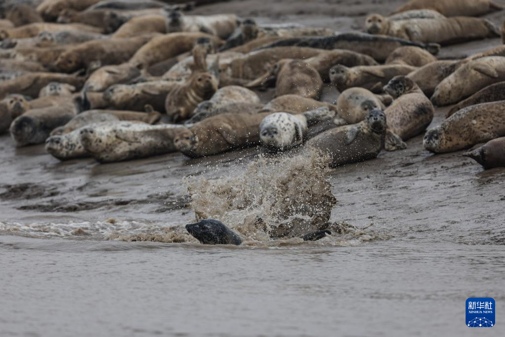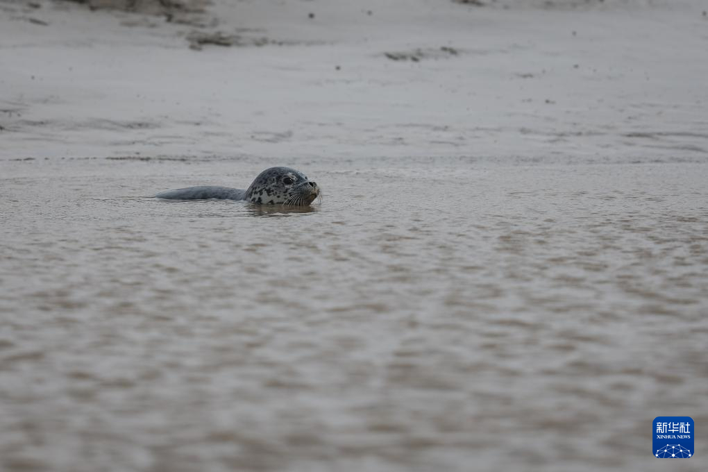 随着气温回升,“旅居”在辽宁省盘锦市辽东湾海域的西太平洋斑海豹进入活跃期。