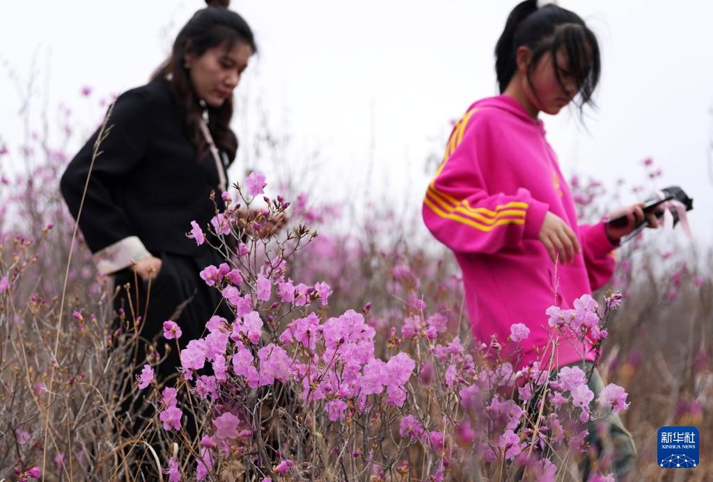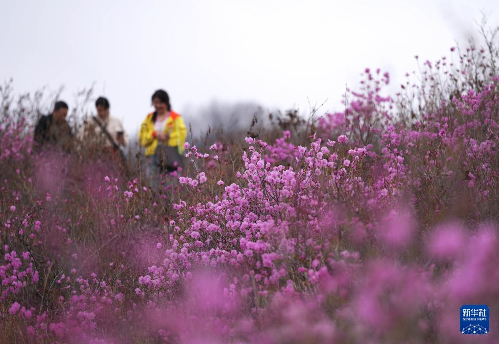 4月13日,游人在千亩映山红景区赏花。新华社记者 李钢 摄