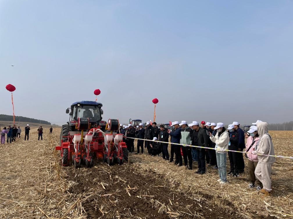 春风拂面,在阜新县阜新镇他本扎兰村的大田里,二十余台农机具整齐排列,亮相演示现场。这些农机具可以针对不同地区的保护性耕作模式,完成免耕、少耕、条耕、宽窄行种植,以及深松、水肥一体化等保护性耕作作业。