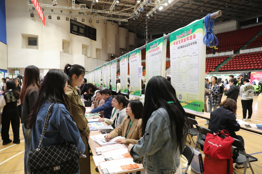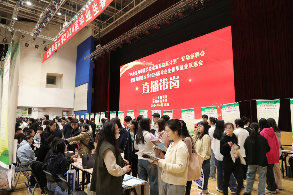 新华网沈阳4月18日电 4月18日,沈阳师范大学2024届毕业生春季大型就业双选会在沈阳师范大学星晔会堂举办。