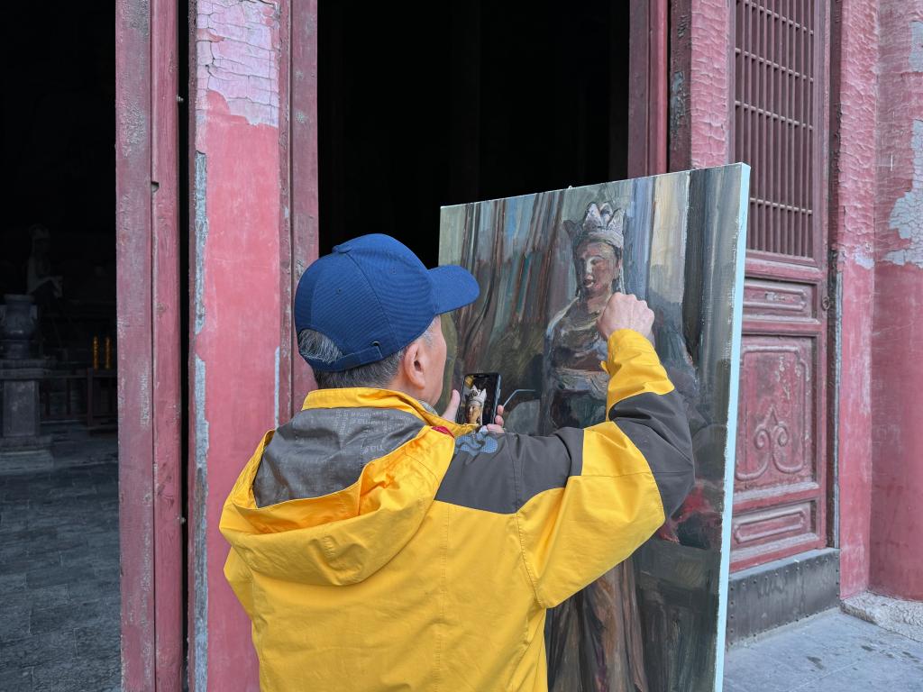 移步木构建筑大雄殿内,只见通高九米的“过去七佛”泥塑造像端然耸立,2400多平方米遗存彩绘遍布大雄殿梁架、斗拱内侧及内槽斗拱。雕栏玉砌,美轮美奂,油画大师纷纷架设起画布,挥洒各色油彩,力求表现出这座千年历史文化遗产的样貌与古韵。