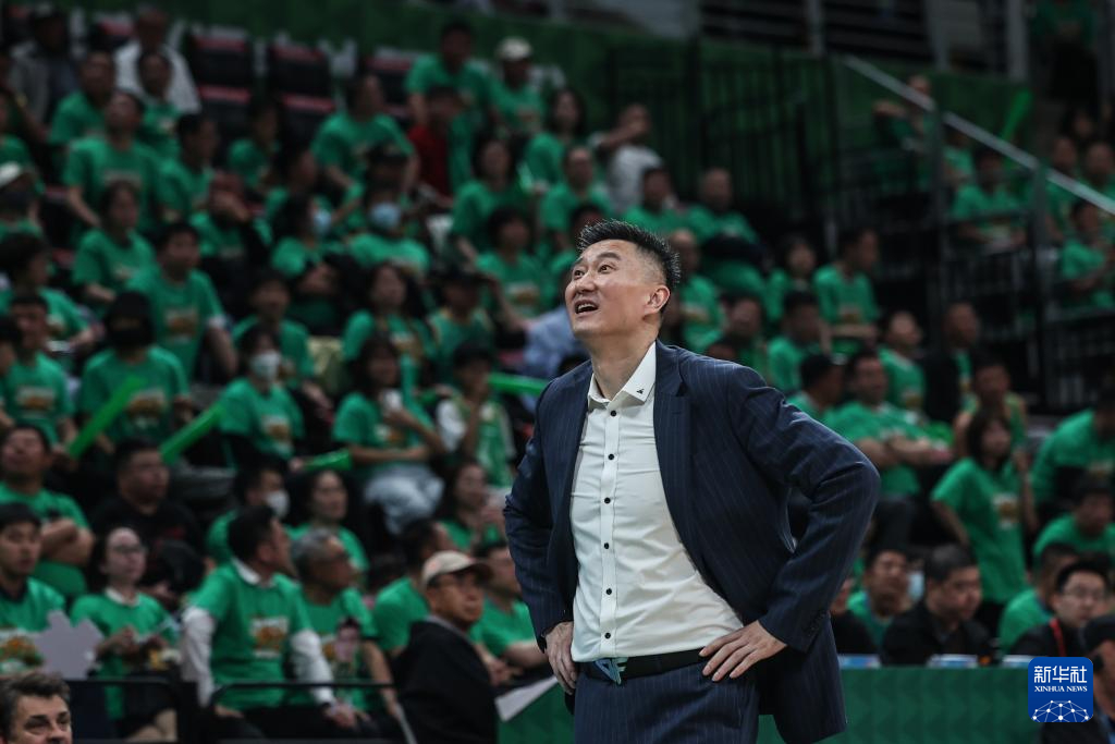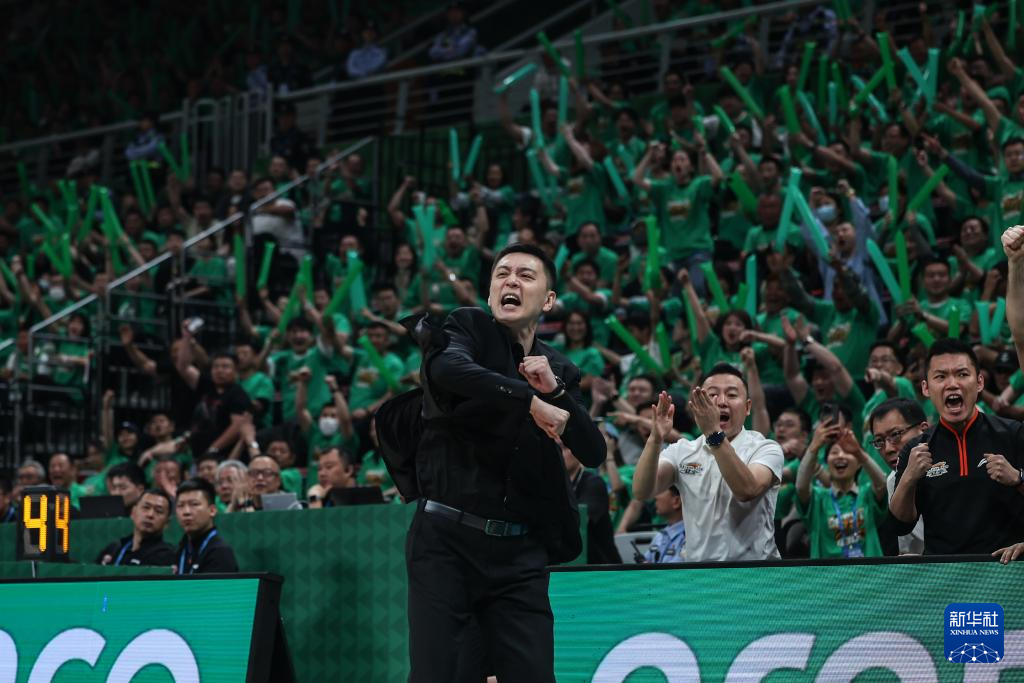 5月11日,辽宁队主教练杨鸣在比赛中庆祝。新华社记者 潘昱龙 摄