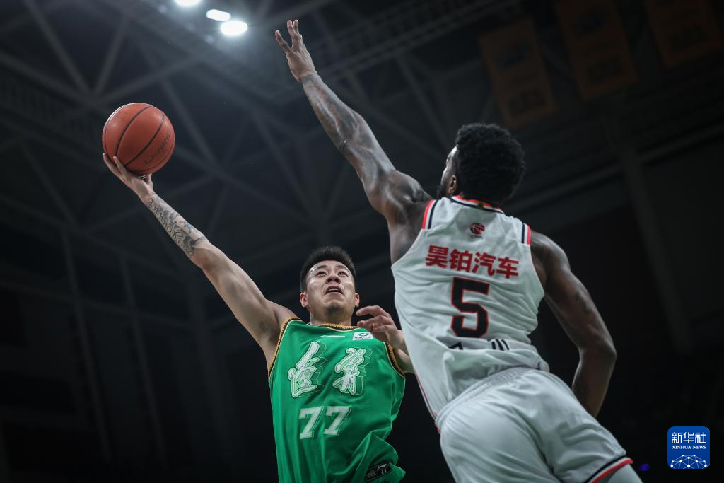 5月11日,辽宁队球员赵继伟(左一)在比赛中上篮。新华社记者 潘昱龙 摄