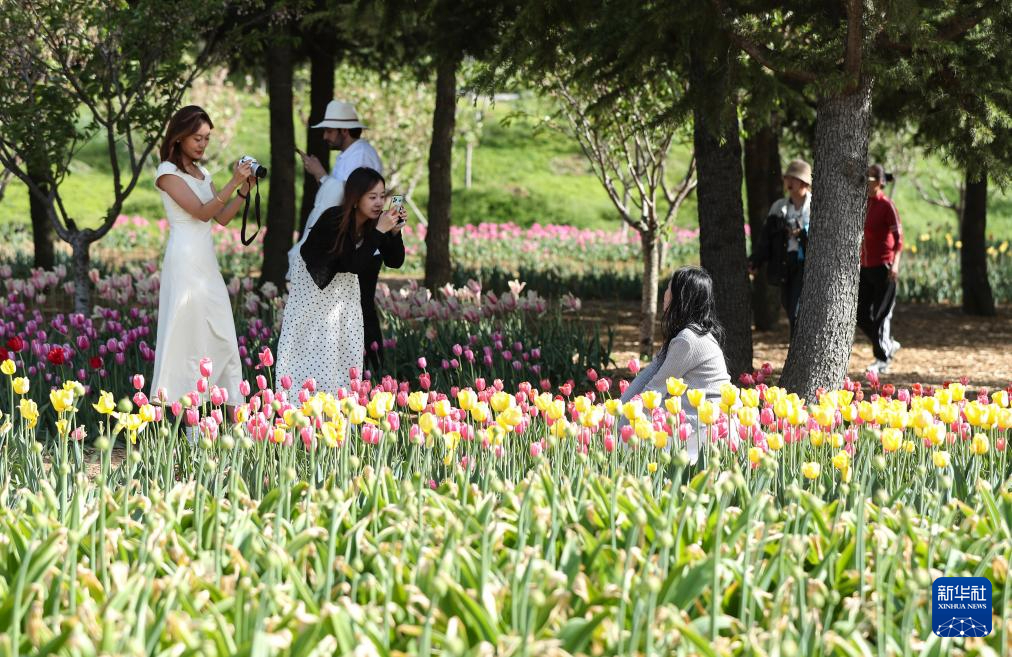 5月11日,游客在大连英歌石植物园游览拍照。新华社记者 龙雷 摄pagebreak